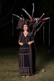 The Alizarin Heritage Ajrakh Koti With Indigo Cotton Dress