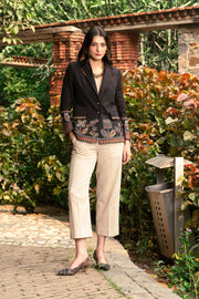 The Emerald Bagh Block-Print Short Coat with Beige Cotton Pants