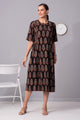The ajrakh printed midi dress is cotton based and designed for sheer comfort yet exudes chic and elegance .