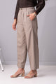 Cotton trousers provide a perfect complement, enhancing the overall aesthetic while ensuring all-day comfort. Creatively pintucked at the waistband with additional pleats given in the front to provide ease of movement for your daily busy days as well as the evening seated couch coffee dates. The look gets super chic with the minutely pintucked panels at both sides of the trouser. Experience the beauty of traditional craftsmanship where style. Blends with perfectionism