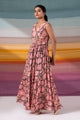 " The basic beauty and main characteristic of crepe is its wrinkled look. The overall look gets enhanced by the varicolored floral print running through the entire outfit. The long dress has been elasticated on the waist to give it an enhanced fit for all bodies. The front and back is further magnified by the minute bead and lace details. The flared fall of the dress outspeaks for itself and thereby comfortable to be paired for any occasion. Length-54î